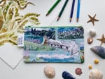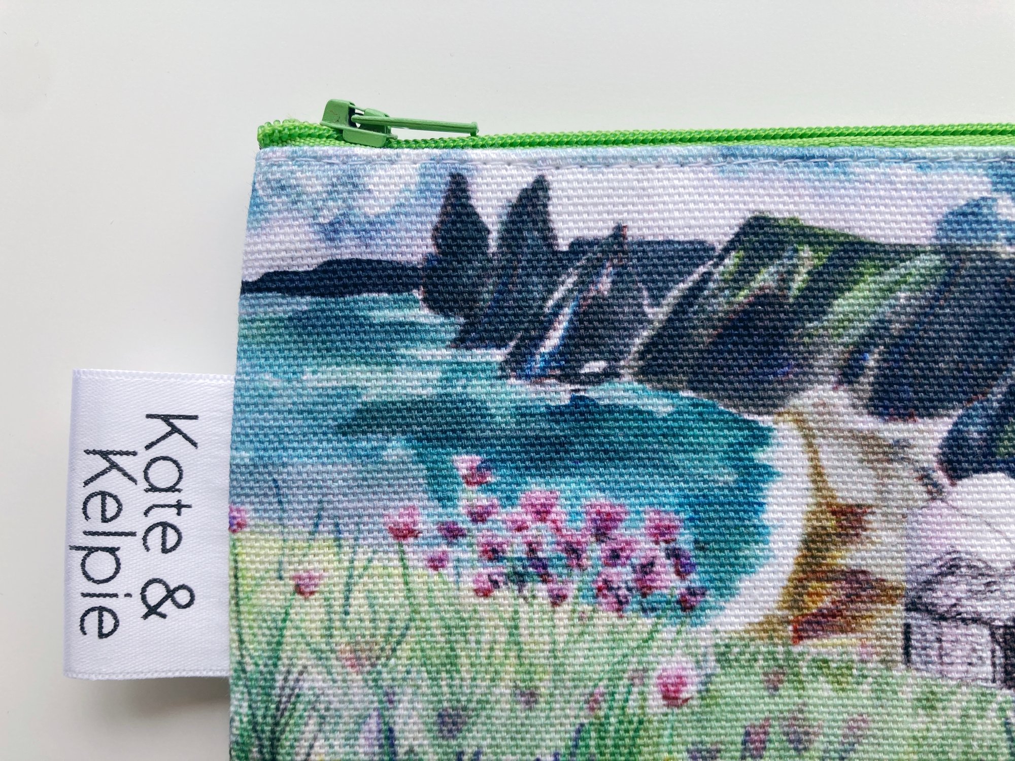 A lovely little makeup bag featuring paintings of iconic landmarks, big skies and Caithness hoosies that make this part of Scotland so distinctive. The almost vintage postcard arrangement offers a different take on Scottish design making an ideal practical gift inspired by home and heritage.