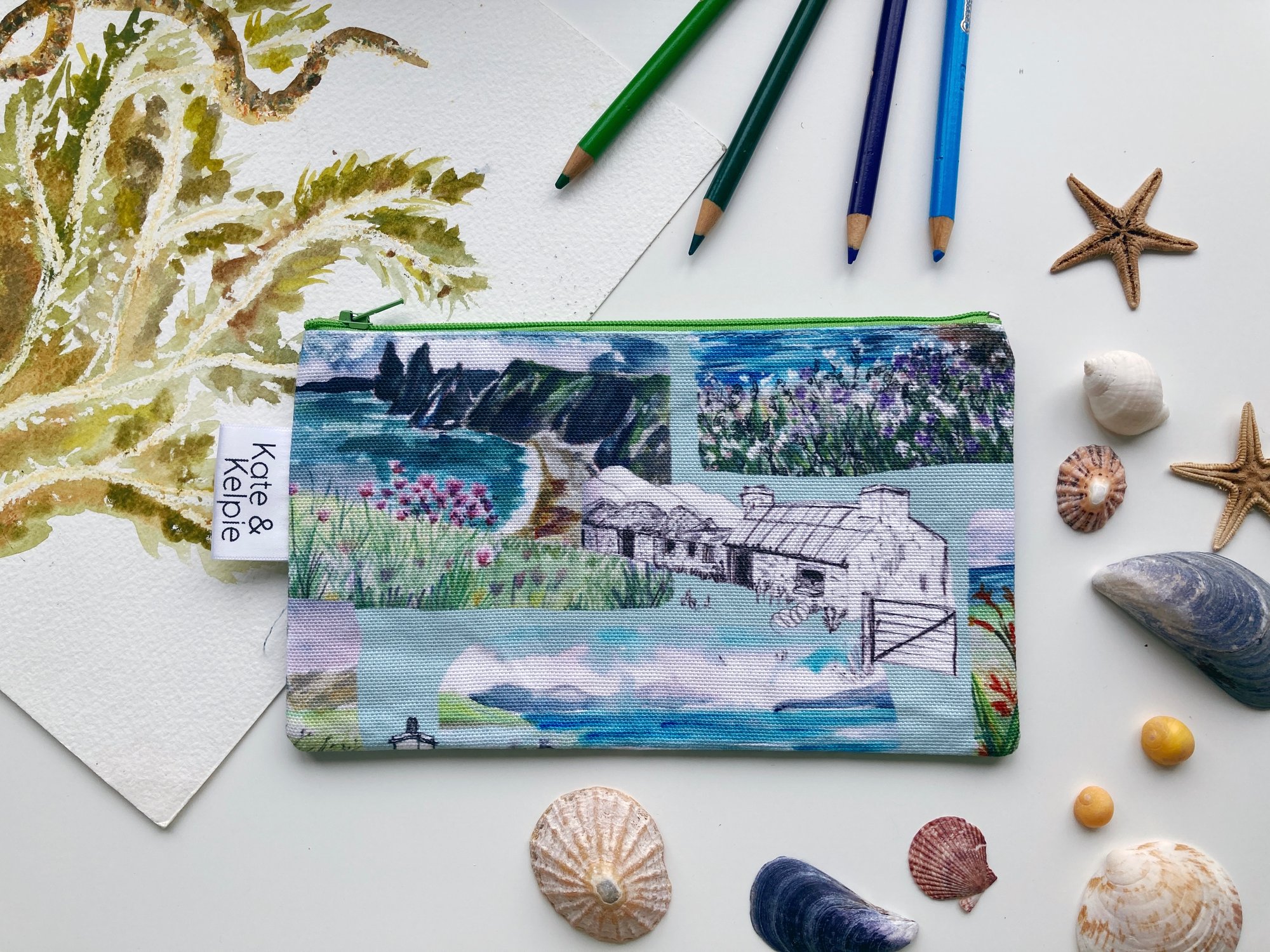 All Kate & Kelpie designs are based on Kate’s original paintings and linocut prints giving them a textured quality which retains the imperfect nature of hand printing. The designs are digitally printed in the UK onto 100% cotton using water based, eco-friendly inks. All our products are handmade here in north Scotland. Please note pattern placement may vary from the image shown as each individual pencil case is handmade. Colours may also vary slightly from what you see on screen, however we try to capture colours as accurately as possible.